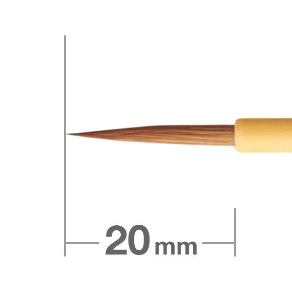 毛質:コリンスキー・イタチ昔は人物の鼻や目などの細部を描くために使用されていた面相筆。穂先が細く、繊細で均一な線を描くときだけでなく、細かい部分の彩色にも使います。主に日本画、書、陶画等で使用します。