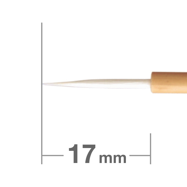 毛質:玉毛(猫)漆で蒔絵を描く際に使用する筆です。玉毛(猫)は毛が柔らかく、穂先はまとまりやすく粘りがあるのが特徴です。毛が柔らかいため、筆跡が残りにくく、漆や金銀粉で字を書いたり、ガラス等にも使えます。