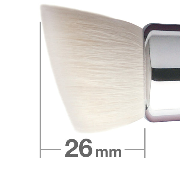 山羊毛の適度なコシ、薄く均一に伸ばすことができる合成繊維、それぞれの長所を存分に活かせるよう、毛先部分に段差がある独特の設計。これによって、艶っぽい肌の質感が素早く、しかも簡単に手に入ります。