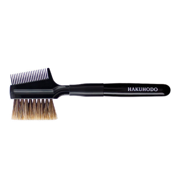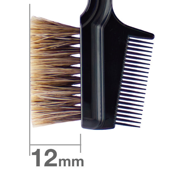 毛質:馬眉の輪郭をぼかすためのブラシ&コーム。 眉を描いた後、輪郭のきわにブラシを軽くあて、細かく左右に動かすことで、自然になじませることができます。 コーム側は眉の毛流れを整えるほか、まつげにも使用可能です。