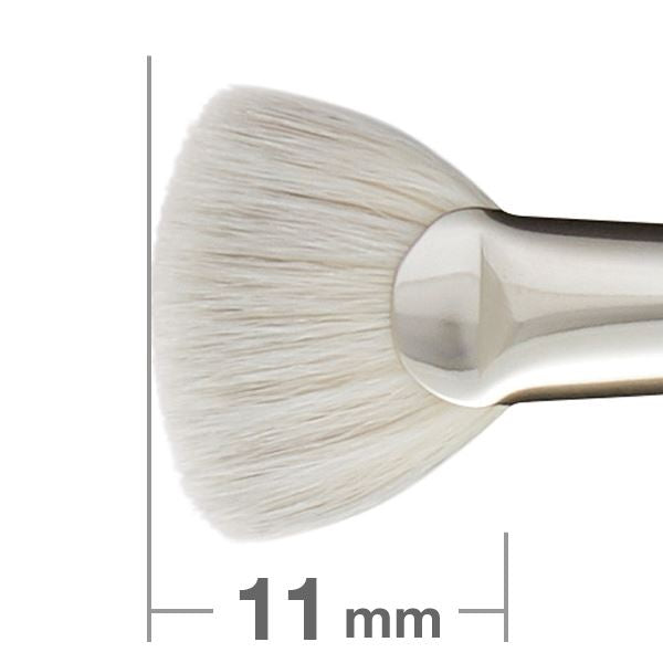 毛質:合成繊維毛丈が短い扇形状のアイシャドウ筆。立てて使うとシャープにアイシャドウをのせられます。アイブロウパウダー用としてもお使いいただけます。F7157と比べて扇形状の山がなくフラットなので、よりエッジの効いたラインが描けます。